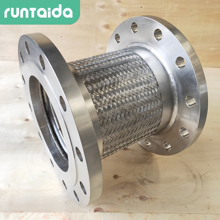 法蘭式金屬軟管的結構是:不銹鋼波紋管外編一層或多層鋼絲或鋼帶網套,兩端配以接頭或法蘭頭,具有杰出的柔軟性、耐蝕性、耐高溫、耐磨損、抗拉性、防水性并提供優良的電磁屏蔽性能,用于輸送各種介質的柔性元件。該產品的作用是為一種柔性耐壓管件安裝于液體輸送系統中,用以補償管道或機器、設備連接端的相互位移,吸收振動能量,能夠起到減振、消音等作用。